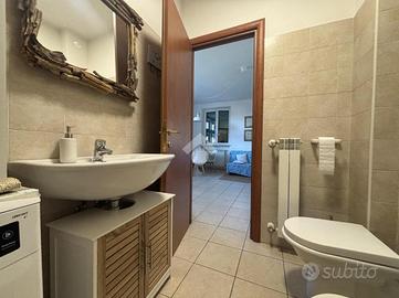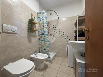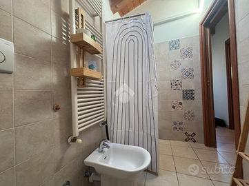 Si trova al pimo piano, ed è posta su due livelli, così composti: l'ingresso anticipa un'ampia zona giorno utilizzabile sia come zona living che come sala pranzo, inoltre, in questo livello inferiore troviamo un bagno cieco dotato di box doccia.