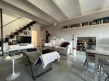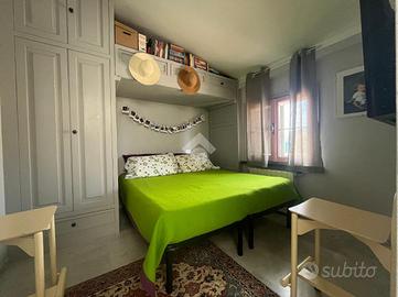 L'ingresso è sul disimpegno, tramite elegante scala interna si accede alla zona giorno, composta da un ampio soggiorno, una cucina abitabile con zona pranzo ed il bagno finestrato dotato di box doccia; proseguendo al piano superiore troviamo infine, un secondo bagno di servizio, e le due camere da letto.