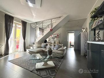 Sarzana - proponiamo in vendita quadrilocale al primo ed ultimo piano in ottime condizioni con terrazzo e posto auto. L'appartamento si apre sull'ampia zona giorno composta da soggiorno e zona pranzo, da qui possiamo accedere alla terrazza, alla cucina abitabile e al primo dei due bagni, finestrato e dotato di box doccia. Proseguendo tramite scala interna posta nel soggiorno, possiamo raggiungere le due camere da letto e il secondo bagno anch'esso finestrato. L'immobile è dotato di impianto di condizionamento e il riscaldamento è autonomo. Le spese condonimiali sono contenute e conclude la proprietà un posto auto.