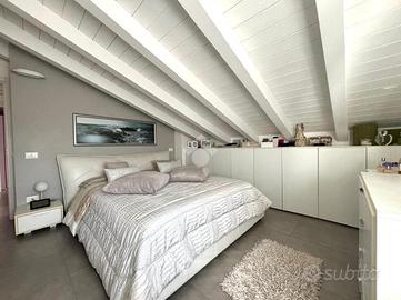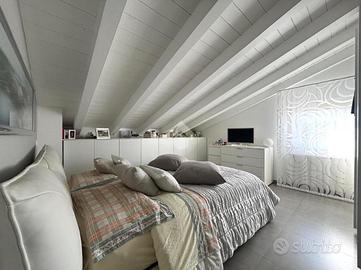 L'appartamento si apre sull'ampia zona giorno composta da soggiorno e zona pranzo, da qui possiamo accedere alla terrazza, alla cucina abitabile e al primo dei due bagni, finestrato e dotato di box doccia. Proseguendo tramite scala interna posta nel soggiorno, possiamo raggiungere le due camere da letto e il secondo bagno anch'esso finestrato.