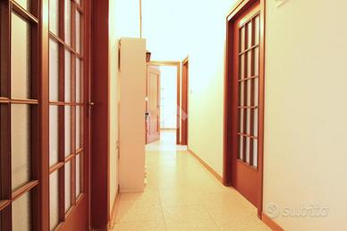 Nella casa attualmente messa a reddito in quanto affittata a studenti, tutte le quattro stanze della stessa sono adibite a camere da letto, due delle quali con uscita ai due balconi dell'appartamento uno con esposizione verso la via principale e uno verso il cortile interno. Dalla seconda pertinenza esterna è possibile accedervi anche dalla cucina che risulta separata abitabile di discrete dimensioni con adiacente doppio servizio/lavanderia. Il bagno finestrato è completo e munito di vasca, rivisto negli anni successivi alla costruzione dello stabile. Altro spazio utile è il ripostiglio di metratura più che sufficiente all'interno di un'abitazione.
