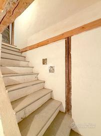 L'ingresso all'appartamento avviene su un corridoio dove si trovano un locale lavanderia ed un locale utilizzabile come piccola cabina armadio, delle scale in pietra conducono al piano superiore dove si sviluppa su di un unico livello l'appartamento. Arrivati al piano dell'appartamento un corridoio divide la zona notte dal soggiorno, quest'ultimo caratterizzato da un camino a legna e ampie vetrate con porte finestre con accesso sui due balconi. Attualmente le camere da letto sono due e la cucina è posizionata vicino al soggiorno, quest'ultima si può andare a collocare nel soggiorno grazie a dei piccoli interventi idraulici, andando così a creare tre camere da letto tutte dotate di finestra e una cucina in stile moderno collocalta nel soggiorno. Infine i bagni sono due dotati di doccia e finestra.