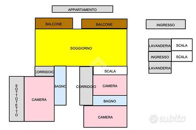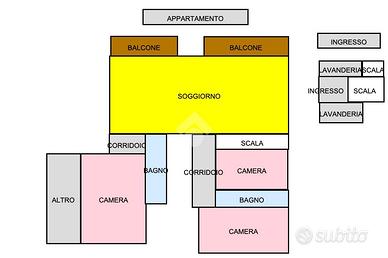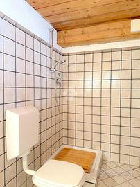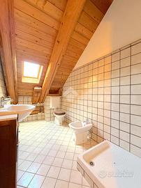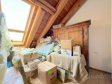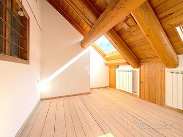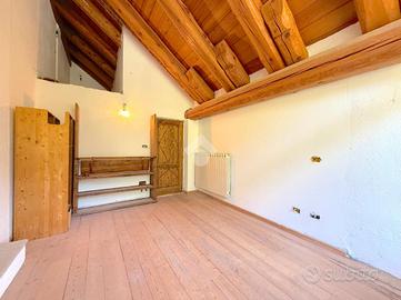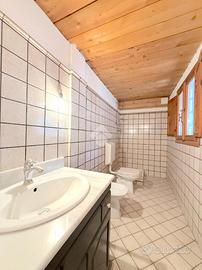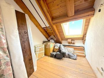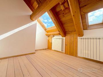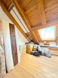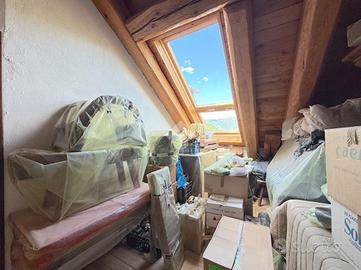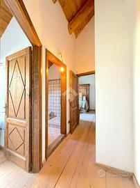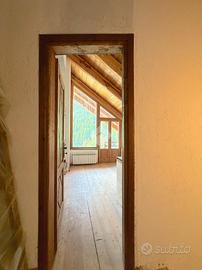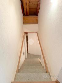 L'ingresso all'appartamento avviene su un corridoio dove si trovano un locale lavanderia ed un locale utilizzabile come piccola cabina armadio, delle scale in pietra conducono al piano superiore dove si sviluppa su di un unico livello l'appartamento. Arrivati al piano dell'appartamento un corridoio divide la zona notte dal soggiorno, quest'ultimo caratterizzato da un camino a legna e ampie vetrate con porte finestre con accesso sui due balconi. Attualmente le camere da letto sono due e la cucina è posizionata vicino al soggiorno, quest'ultima si può andare a collocare nel soggiorno grazie a dei piccoli interventi idraulici, andando così a creare tre camere da letto tutte dotate di finestra e una cucina in stile moderno collocalta nel soggiorno. Infine i bagni sono due dotati di doccia e finestra.