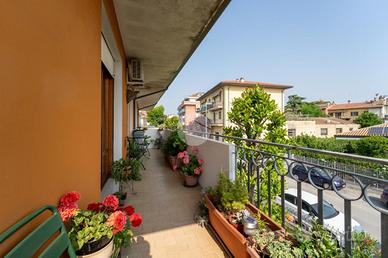 Entrando dall'ingresso indipendente veniamo accolti dall corte ad uso privato di 50mq. L'appartamento si trova al piano primo ed è composto da un ampio ingresso che porta alla cucina abitabile di 14mq con affaccio sul balcone di 16,5mq che prosegue fino al soggiorno di 30mq molto luminoso.