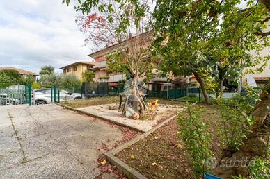 L'appartamento gode di ingresso indipendente con giardino di 100mq e un spazio adibito a posto auto di 50mq.
