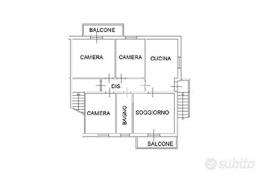Salendo pochi gradini si accede all'abitazione composta da zona giorno separata, con cucina abitabile e soggiorno di 16,5 mq e balcone di 4,5 mq.