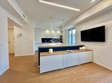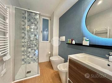 L'appartamento si presenta finemente ristrutturato facendo particolare riferimento all'impiantistica elettrica ed idraulica a norma, infissi in pvc triplo vetro, porta blindata, parquet e impianto di condizionamento canalizzato con bocchette in ogni vano.
