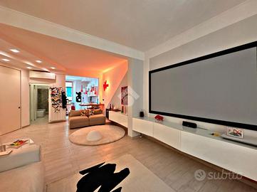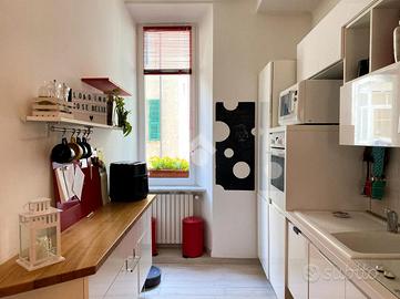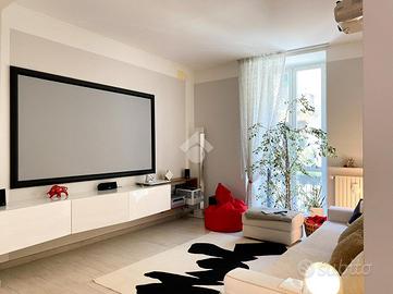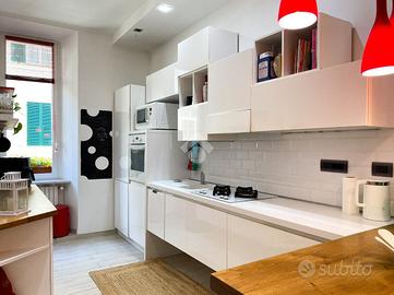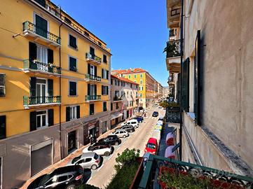 In zona centrale di Savona, a pochi minuti a piedi dai giardini, dalla passeggiata del Prolungamento e dalle spiagge Bandiera Blu. La zona è ben servita da ogni tipologia di negozio e servizio che solo il centro cittadino può offrire. Al secondo piano di uno stabile primi '900 servito da ascensore un moderno quadrilocale completamente ristrutturato con finiture di design. L'appartamento si apre su un'ampia e luminosa zona giorno open space, valorizzata da un'illuminazione moderna a LED e da una pavimentazione uniforme in gres porcellanato che conferisce continuità e stile a tutti gli ambienti. La zona living, con accesso diretto al balcone affacciato su Via Montenotte, si integra armoniosamente con la cucina abitabile, creando uno spazio accogliente e funzionale. La zona notte comprende due camere matrimoniali di generose dimensioni, di cui una con accesso alla veranda, dove è stata ricavata una comoda zona lavanderia. Completano la proprietà un bagno finestrato con doccia, ristrutturato con cura nei dettagli, e un ampio ripostiglio che offre spazio aggiuntivo per l'organizzazione domestica. Aria condizionata, termosifoni in carbonio, riscaldamento autonomo e infissi in PVC con doppio vetro, assicurano un ambiente piacevole in ogni stagione ed ottima efficienza energetica. Una soluzione elegante, pronta da vivere, ideale sia come prima casa sia come appoggio al mare.