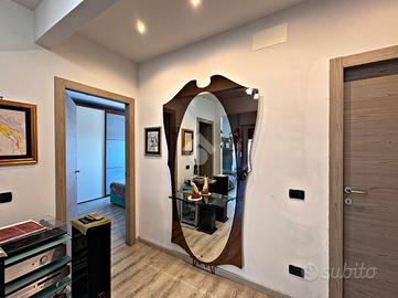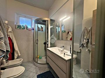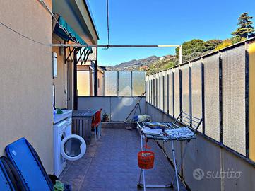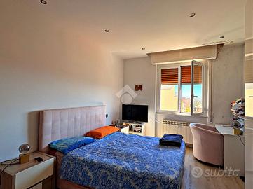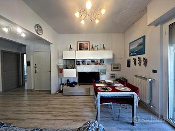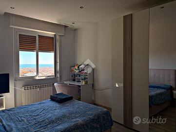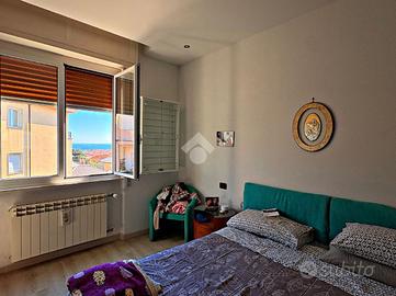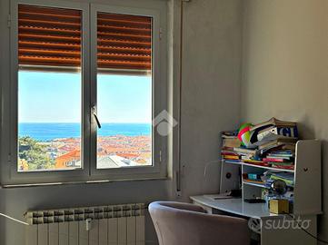 In contesto residenziale tranquillo e immerso nel verde, proponiamo ampio quadrilocale ristrutturato nel 2021, caratterizzato da spazi generosi e piacevoli affacci panoramici con vista mare, a circa 10 minuti a piedi dal centro città. Lo stabile si presenta in buone condizioni con il tetto rifatto nel 2024. Sono presenti inoltre dei posti auto condominiali non assegnati. L'ingresso conduce a una luminosa zona giorno con angolo cottura, arricchita da accesso diretto al primo balcone e a un terrazzo vista mare, ideale per momenti di relax all'aperto. La zona notte è composta da tre ampie camere matrimoniali, tutte con piacevole esposizione verso il mare, di cui una con accesso al secondo balcone, e da un bagno finestrato con doccia. L'immobile è dotato di riscaldamento centralizzato con termovalvole e infissi in PVC con doppio vetro, soluzioni che garantiscono comfort abitativo ed efficienza energetica. Completano la proprietà una cantina e un posto auto condominiale non assegnato. La posizione, riservata ma ben collegata, rende questa soluzione ideale per chi desidera vivere in un ambiente sereno, circondato dal verde, senza rinunciare alla comodità dei servizi e alla vicinanza al centro.