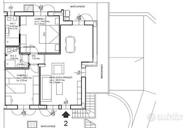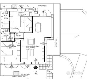 Ampia zona giorno open-space, due camere, e doppi servizi.