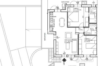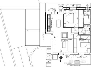 Ampia zona giorno open-space, due camere, e doppi servizi.