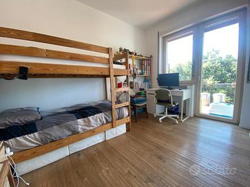 SCHIO - SANTA CROCE Nel cuore di uno dei quartieri più silenziosi e sicuri del territorio scledense, in una strada interna riparata dal traffico e dal rumore, proponiamo appartamento quadrilocale di 100 mq, caratterizzato da ambienti ampi e da una ottima luminosità naturale che valorizza ogni stanza. La soluzione si trova in un contesto riservato di sole cinque unità abitative, con spese di gestione molto contenute. L'immobile si presenta in ottime condizioni grazie alla completa ristrutturazione eseguita tra il 2004 e il 2005, che ha interessato integralmente l'impianto elettrico ed idraulico, il bagno, le finiture e il rifacimento del tetto. Inoltre è dotato di una caldaia a condensazione di recente installazione e di pannelli solari. A completare la proprietà, i pregiati serramenti in legno e alluminio con doppia camera, installati nel 2013, che garantiscono un eccellente isolamento termico e acustico. Si tratta di un'abitazione curata in ogni dettaglio, dove la solidità degli spazi tipici degli anni '70 si fonde armoniosamente con il comfort delle dotazioni moderne. Varcato l'ingresso, veniamo accolti da un'ampia e luminosa zona giorno di 30 mq con accesso a un terrazzo vivibile, perfetto per piacevoli momenti di relax all'aperto. La zona notte dispone di tre camere generose -- una matrimoniale di 15 mq e due doppie di 12 e 11,5 mq -- e di un bagno finestrato ben rifinito. Comodo garage privato e area esterna condominiale. Una soluzione ideale per famiglie e per chiunque cerchi massima tranquillità senza rinunciare alla comodità: immediata vicinanza a scuole, parchi e servizi.
