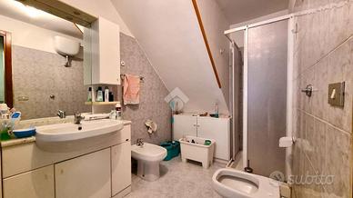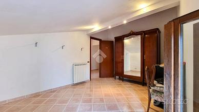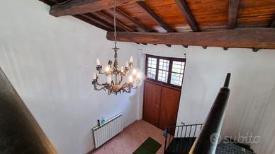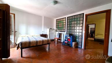 Dal disimpegno, tramite una scala in marmo, si accede al primo piano composto da un bagno con finestra e box doccia e due camere matrimoniali una delle quali permette l'accesso alla corte privata che funge anche anche da secondo ingresso indipendente.