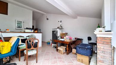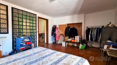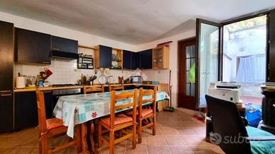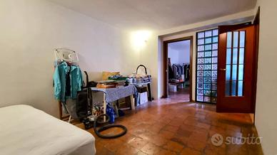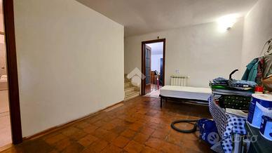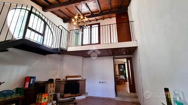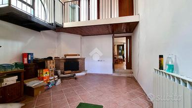 Dall'ingresso principale troviamo un ampio e luminoso androne con camino e scala in ferro a vista. Proseguendo entriamo nella cucina abitabile con piccola corte di pertinenza, un locale tecnico e un grande disimpegno che conduce al bagno cieco con box doccia e alla camera matrimoniale dalla quale è possibile ricavare un ingresso indipendente al momento chiuso. Dalla cucina, tramite una scala a chiocciola, si accede al locale seminterrato pensato come sala hobby.