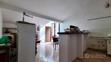 Dalla scala in ferro nell'androne principale si accede al terzo ambiente composto da soggiorno con angolo cottura e camino con accesso alla corte, bagno cieco con box doccia e camera matrimoniale.