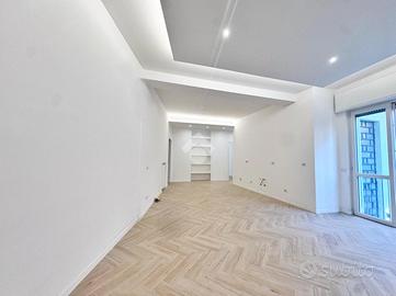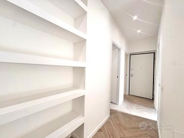 L'appartamento è composto da una luminosa zona giorno con soggiorno e cucina open space, tre spaziose camere da letto (ideali anche come studio o stanza per ospiti), doppi servizi e disimpegni ben organizzati. Completa la soluzione la cantina
