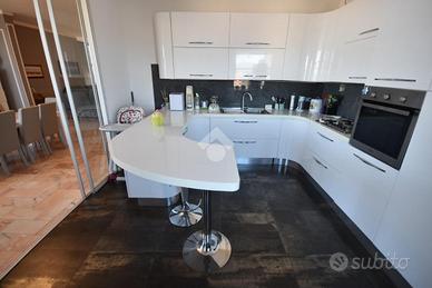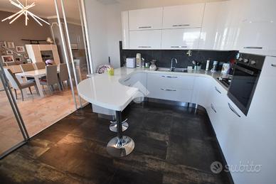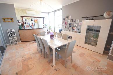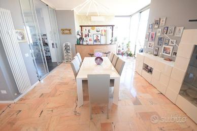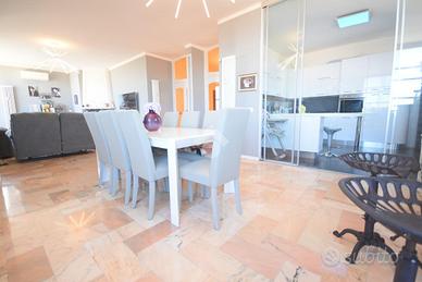 In zona centrale, nel cuore pulsante della città e direttamente su Corso Matteotti, proponiamo in vendita un prestigioso quadrilocale di circa 178 mq, situato al sesto piano di un elegante contesto condominiale dotato di ascensore. La proprietà si distingue per la tripla esposizione, che regala luminosità eccezionale in ogni ambiente e una vista panoramica aperta sulla città. Due balconcini completano l'abitazione, offrendo piacevoli affacci esterni. Gli spazi interni, ampi e ben distribuiti, si prestano perfettamente sia a famiglie numerose che a chi desidera ambienti ariosi e confortevoli. L'ingresso si apre su un accogliente soggiorno doppio con camino e un raffinato angolo bar, ideale per ricevere ospiti. Segue una cucina abitabile separata, mentre un comodo disimpegno conduce alla zona notte, composta da due camere da letto di generose dimensioni e da una terza camera posta sul lato opposto, perfetta come studio o stanza ospiti. La soluzione è completata da doppi servizi finestrati, ristrutturati con materiali di qualità. Nel 2020 l'intero condominio è stato oggetto di un'importante riqualificazione energetica, con rifacimento della facciata dotata di cappotto termico e ristrutturazione completa del tetto, garantendo efficienza e risparmio energetico. Le spese condominiali comprendono tutto: riscaldamento, gestione condominiale, acqua e altro. L'impianto è dotato di termovalvole, quindi i costi vengono calcolati in base ai consumi effettivi e al proprio stile di utilizzo dell'abitazione. Nello stesso periodo, l'appartamento ha beneficiato di un rinnovo totale degli impianti elettrico e idraulico. Completano la proprietà due cantine di pertinenza e la possibilità di box auto nello stabile.