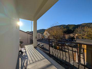 L'abitazione si apre su un corridoio che conduce ai vari ambienti: una cucina abitabile, un soggiorno e uno studio, tutti con accesso diretto alla terrazza, perfetta per momenti di relax all'aria aperta. La zona notte comprende due camere da letto.