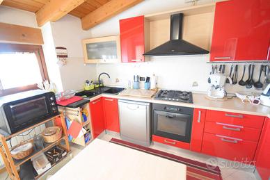 Questa abitazione, unica sul piano di circa 100 mq, si distingue per la sua ampiezza e per le finiture raffinate, con travi a vista che riscaldano ogni ambiente, donando un'atmosfera accogliente e suggestiva.