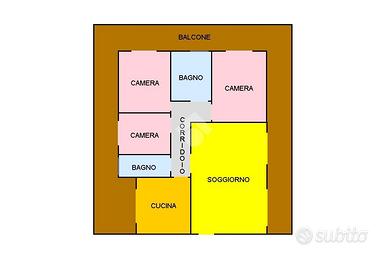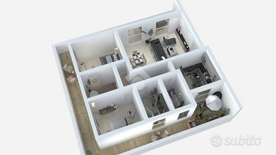 - 4 locali: soggiorno, cucina abitabile con veranda, 3 camere di cui una matrimoniale, doppi servizi