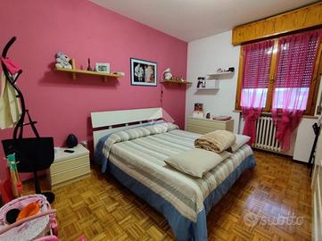 La zona notte offre tre camere da letto: due matrimoniali di generose dimensioni e una doppia, adatta anche come studio o stanza.