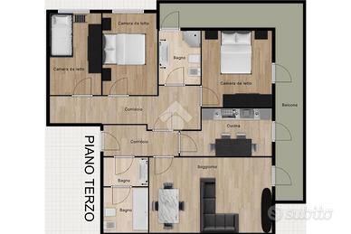 SONDRIO-VIA STELVIO In posizione strategica e centrale, nel cuore della città, proponiamo in vendita un appartamento quadrilocale con ampio terrazzo, completo di box auto e cantina. L'immobile è situato al terzo piano di un condominio servito da ascensore. Punto di forza della proprietà è l'ampio terrazzo, che grazie alle sue generose dimensioni consente di godere di piacevoli momenti all'aperto, ideale per cene estive. L'ingresso si apre su un comodo disimpegno che conduce ai vari ambienti della casa. Subito all'ingresso troviamo un primo bagno, dotato di vasca e impianto di aerazione forzata. La zona giorno è composta da un ampio soggiorno e da una cucina separata, entrambe di generose dimensioni. La zona notte comprende una camera matrimoniale con accesso diretto al terrazzo, in continuità con la zona giorno, un secondo bagno finestrato con box doccia, due ulteriori camere da letto e un pratico ripostiglio. L'appartamento si presenta in ottime condizioni di manutenzione ed è dotato di serramenti nuovi. Completano la proprietà un box auto singolo e una cantina.