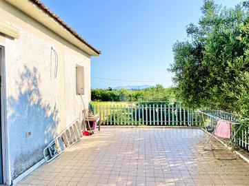 SONNINO - LOC. CAPOCROCE: Appartamento in Villa con Ingresso Indipendente, Garage e Terreno In posizione tranquilla e riservata, proponiamo in esclusiva la vendita di un appartamento in villa con ingresso indipendente, sito al primo piano, ideale per chi cerca spazio, privacy e contatto con la natura. L'appartamento, che si sviluppa su una superficie di circa 100 mq, si apre nella cucina abitabile di generose dimensioni, ambiente ideale per la vita quotidiana e per accogliere momenti conviviali. Il salotto, arioso e ben illuminato, si affaccia direttamente su un ampio terrazzo di circa 50 mq, perfetto per godersi il relax all'aperto, organizzare pranzi estivi o semplicemente ammirare il paesaggio circostante. La zona notte ospita due camere da letto matrimoniali, entrambe di ampia metratura, in grado di offrire comfort e versatilità d'arredo. Un pratico ripostiglio, perfettamente integrato nel corridoio che collega i vari ambienti, aggiunge ulteriore funzionalità alla casa. A completare il piano , il bagno principale, comodo e ben posizionato rispetto agli spazi della casa. Un ulteriore vantaggio è rappresentato dal secondo bagno, situato al piano terra, sotto la scala che conduce all'ingresso dell'abitazione e dotato di finestra. La proprietà si presenta in buono stato conservativo, pronta per essere abitata, e dotata di impianto di climatizzazione. All'esterno troviamo un garage di circa 30 mq, finestrato e libero su quattro lati, un locale accessorio con bagno e cucinino e un terreno impreziosito da 25 piante di ulivo, ideale per chi ama il verde e la vita all'aperto. La soluzione si inserisce in un contesto residenziale e silenzioso a pochi passi dal rinomato Ristorante "La Tombola", perfetto per famiglie o per chi desidera vivere lontano dal caos cittadino, pur restando ben collegato ai principali servizi.