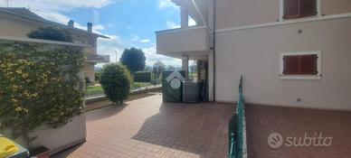 In zona residenziale tranquilla, a 5 minuti dal centro, vi presentiamo un appartamento al piano terra all'interno di una palazzina di recente costruzione. Si compone di: soggiorno con angolo cottura, 3 camere e 2 bagni. La proprietà comprende inoltre un posto auto esclusivo, un garage di 25 mq, un portico e un giardino esclusivo di 100 mq ca, in parte lastricato. E' dotato di impianto di allarme, pannello solare e di una rata condominiale di soli 20 € al mese.