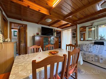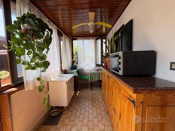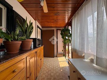 La soluzione si compone di una veranda esterna, soggiorno con angolo cottura, tre camere da letto (una matrimoniale e due camerette) e bagno finestrato con box doccia.