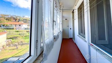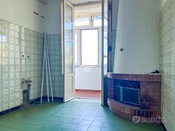 L'ingresso conduce a una cucina abitabile con camino, ambiente centrale della casa, collegata a una balconata verandata utilizzabile nella quotidianità.
