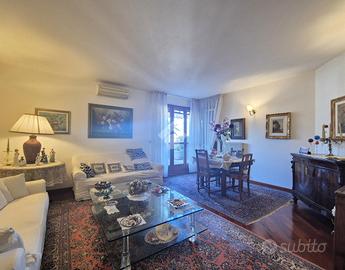 La dotazione comprende anche una cantina di proprietà ed un garage doppio, entrambi al piano interrato e collegati con l'ascensore.
