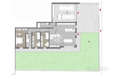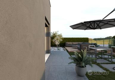 IL PROGETTO Con immenso piacere, vi portiamo alla scoperta del nuovo progetto residenziale che unisce armoniosamente il comfort urbano e la tranquillità della natura. Situata a pochi passi dal centro Paese, questa nuova soluzione offrirà un'esperienza abitativa esclusiva in una zona verde ed al contempo pregiata, contornata da villette unifamiliari: vivere circondati dalla natura senza rinunciare alla comodità della vita in città. Ideale per famiglie e giovani coppie che non vogliono rinunciare ad uno stile di vita moderno e funzionale, assaporando l'essenza del contemporaneo in cui design ed eleganza si incontrano. L'edificio sarà composto da 10 unità abitative progettate per rispondere ad ogni tipo di esigenza, ognuna delle quali vedrà ambienti concepiti per ottimizzare lo spazio e garantire comfort, valorizzate dall'opportunità di vivere il relax all'aperto grazie ai suoi ampi giardini e terrazzi vivibili, perfetti per momenti di condivisione e benessere. UNITA' 5 La soluzione proposta è un quadrilocale al pian terreno, caratterizzato da un'ampia zona living di circa 50 mq, un disimpegno in cui adibire armadiature a muro, tre camere da letto e due bagni. A dare prestigio all'immobile, un giardino privato di 235 mq. Completa la dotazione un garage doppio con accesso indipendente e raggiungibile internamente dall'appartamento, oltre ad un posto auto ad uso esclusivo. L'immobile sarà dotato di riscaldamento a pavimento in pompa di calore, pannelli fotovoltaici, impianto di ventilazione meccanica controllata, impianto di raffrescamento, tapparelle motorizzate e serramenti in PVC. Per maggiori informazioni contattaci ai numeri: - oppure passa a trovarci in agenzia.