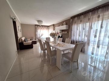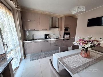 L'immobile, recentemente ristrutturato, offre spazi luminosi e ben distribuiti. L'ingresso si apre su un disimpegno che conduce a un ampio soggiorno che è il cuore della casa, ideale per momenti di relax e convivialità. La cucina abitabile è perfetta per chi ama cucinare e condividere pasti in famiglia. Le due camere da letto garantiscono comfort e privacy, mentre i doppi servizi aggiungono praticità alla vita quotidiana.