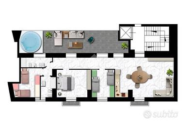 Proponiamo in esclusiva un elegante appartamento al secondo piano della scala A, con una superficie interna di circa 110 mq, così distribuiti: