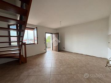 SUNO: In posizione strategica, appartamento duplex all'ultimo piano di un edificio costruito nel 2010. La zona giorno si apre su un ampio openspace con accesso al sottotetto, diviso in modo tale da creare un secondo bagno e due camere da letto. La zona notte è composta da un bagno finestrato e una camera da letto matrimoniale; entrambi i locali hanno accesso al balcone tramite una portafinestra. Completano la proprietà un box auto e un posto auto esterno.