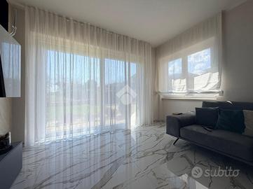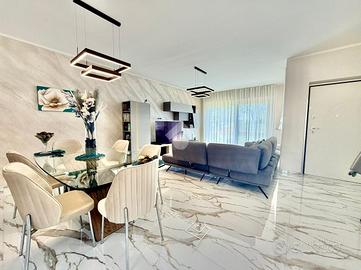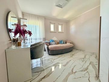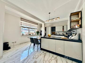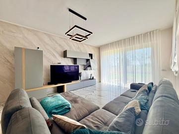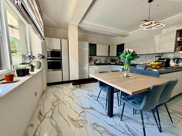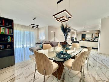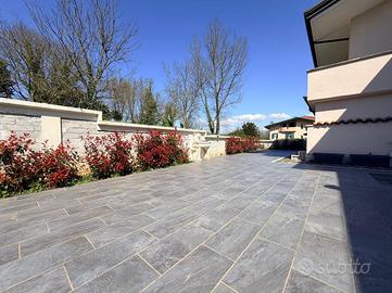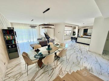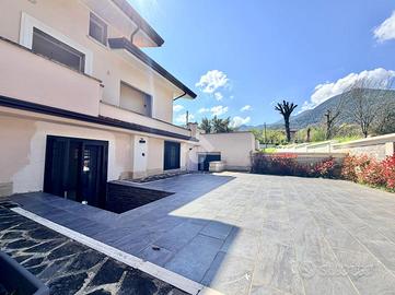 Immaginate di varcare la soglia di una dimora dove il concetto di 'casa' incontra l'esclusività di una villa contemporanea. Situato nella ricercata parte bassa di Supino, questo appartamento rappresenta il perfetto connubio tra indipendenza e raffinatezza, accogliendovi attraverso un doppio ingresso automatizzato, sia carrabile che pedonale, che garantisce massima privacy e sicurezza sin dal primo istante, supportata da un moderno sistema di videocitofonia. L'architettura esterna è abbracciata dal verde: una splendida corte con giardino si apre sul fronte della proprietà, offrendo un biglietto da visita naturale e rilassante, mentre la parte posteriore svela un'ampia corte pavimentata, ideale per cene conviviali all'aperto in totale riservatezza. Una volta varcato l'ingresso, si viene avvolti dal calore costante del riscaldamento a pavimento e dalla qualità superiore dei materiali scelti per le finiture, che riflettono una cura del dettaglio quasi sartoriale. La zona giorno al piano terra è un inno alla convivialità, dominata da un salone monumentale che integra armoniosamente l'area pranzo e una cucina a vista dal design moderno, completata da un primo bagno di servizio funzionale ed elegante. Un leggero dislivello di soli tre gradini conduce con naturalezza alla zona notte, un ambiente intimo e silenzioso dove lo spazio è stato ottimizzato con maestria. Qui troviamo due lussuose camere matrimoniali, entrambe arricchite da una pratica cabina armadio, una terza camera versatile e un ampio bagno padronale a servizio del piano. La proprietà è completata da un ampio garage doppio, capace di ospitare comodamente due vetture proteggendole da ogni intemperia, e da un locale tecnico dedicato, studiato per gestire con ordine e discrezione gli impianti all'avanguardia della casa. Vivere in questa residenza significa scegliere una qualità della vita superiore, in un contesto nuovo e tecnologicamente avanzato, situato in una delle posizioni più strategiche e soleggiate di S...