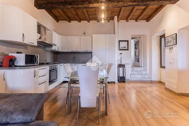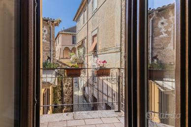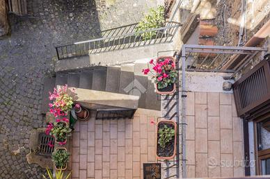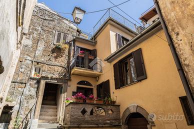 Appartamento indipendente con terrazzo nel cuore di Sutri. Nel centro storico di Sutri, a pochi passi dalla via principale, dai servizi e dal parcheggio pubblico, proponiamo in vendita una caratteristica casa con ingresso indipendente, recentemente ristrutturata e pronta da vivere. L'immobile si sviluppa su più livelli per una superficie di circa 130 mq commerciali, offrendo spazi ben organizzati e versatili, ideali sia come abitazione principale che come seconda casa. Al primo livello troviamo una zona giorno open space con cucina a vista, arricchita da camino e travi in legno, elementi che donano calore e personalità all'ambiente. Completa il piano una stanza aggiuntiva, perfetta come studio, cameretta o spazio hobby, oltre a un comodo bagno di servizio. Il piano superiore è dedicato alla zona notte, composta da due camere - una matrimoniale e una cameretta - e un bagno con doccia. Il vero valore aggiunto della proprietà è l'ampio terrazzo all'ultimo piano: uno spazio raro nel centro storico, ideale per pranzi e cene all'aperto, momenti di relax o convivialità, con affacci suggestivi sui tetti del borgo. La recente ristrutturazione ha interessato elementi fondamentali come bagni, infissi, pavimentazione della zona giorno e terrazzo, rendendo l'immobile subito abitabile senza necessità di interventi. La posizione è uno dei punti di forza: centrale ma comoda, permette di raggiungere facilmente tutti i servizi e di vivere il borgo a piedi, senza lo stress dell'auto. Una soluzione perfetta per chi cerca una casa funzionale con due camere, uno sfogo esterno importante e il fascino autentico del centro storico. Non lasciartela sfuggire: contattaci subito per prenotare la tua visita!