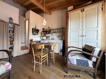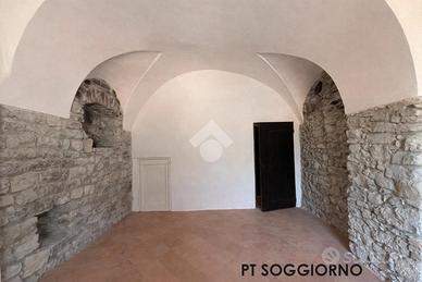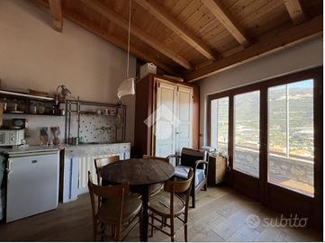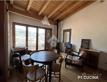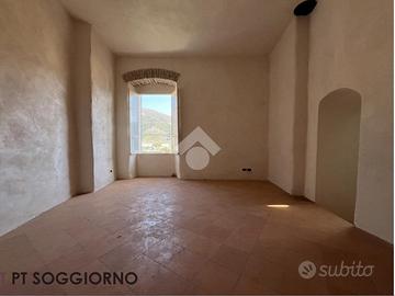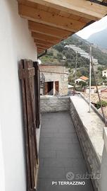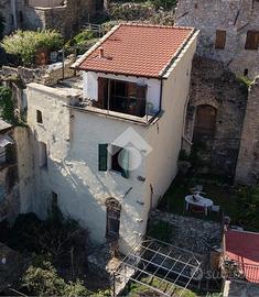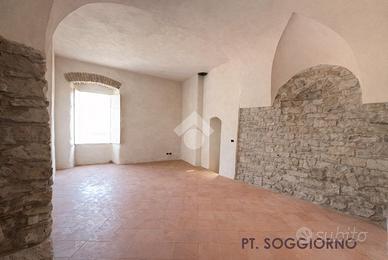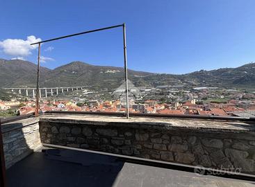 TAGGIA, Terracielo con terrazza, balcone, giardino e rustico annesso! A pochi passi dalla zona parcheggi di via Tages e ai piedi del Castello, proponiamo terracielo con piccolo giardino L'immobile del X secolo conserva in facciata e al suo interno le murature in pietra originali dell'epoca, valorizzate da soluzioni e materiali di gusto contemporaneo È distribuito su due piani piu cantina seminterrata Al piano d'ingresso troviamo un primo bilocale composto da zona giorno con vista sulle colline, cucina con terrazzino scoperto, soppalco e bagno. Tramite la scala interna si accede al secondo bilocale: al piano ammezzato è presente la camera da letto, poi si sale alla zona giorno affacciata sul terrazzino panoramico e da qui all'ampio terrazzo privato. Completano il livello un bagno, una lavanderia e un secondo terrazzo Al piano seminterrato sono presenti due cantine, ideali per realizzare un'ampia taverna . Da questo livello si accede direttamente a un giardino di circa 35 mq, sfruttabile come spazio relax o piccolo orto. Completa la proprietà un rustico indipendente, con possibilità di recupero per la realizzazione di due piccole unità abitative oppure di un ampio trilocale su due piani con terrazzino e grande taverna . Soluzione interessante sia come abitazione principale che come investimento, grazie alla distribuzione su più livelli indipendenti VENDITA PROPOSTA CON FORMULA RENT TO BUY. Viene rilasciato il possesso immediato del bilocale al piano terra, cantina, giardino e rustico per i primi anni, e successivamente il possesso dell'intera proprietà.