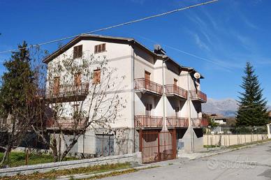 VILLA SAN SEBASTIANO frazione di Tagliacozzo (a 7km da Tagliacozzo) APPARTAMENTO PIANO PRIMO in stabile di quattro unità abitative Ingresso(5mq), Soggiorno con camino(27mq) cucina abitabile(12mq), ripostiglio interno(2mq), corridoio(8mq) Camera(21mq), camera(18mq) camera(15mq), bagno con finestra e vasca(5,6); Quattro Balconi di 8 mq-8mq -4mq e 4mq GARAGE di 20mq e Locale cantina in comune Nel prezzo è compreso l'intero arredamento