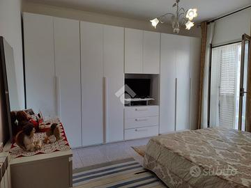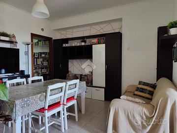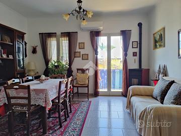 Trappitello, frazione del comune di Taormina a confine con la località Chianchitta e a solo un chilometro da Giardini Naxos. Il casello autostradale A18 si raggiunge a pochi minuti tramite strada scorrevole così da raggiungere le città di Catania e Messina. Il contesto si presenta tranquillo circondato da condomini anni 70'/80', piccoli contesti e case singole. Il centro del paese si raggiunge a piedi ricco di servizi come panifici, supermercati, bar e varie attività commerciali. La piazza centrale è un punto di ritrovo per gli abitanti della zona ben curata con verde. L'appartamento si trova all'interno di una piccola palazzina che comprende solo tre unità abitative con il prospetto esterno in buone condizioni, l'ascensore è assente e non sono previste spese di condominio. L'immobile si trova al secondo piano, internamente misura 83 mq calpestabili, l'ingresso è diretto su ampio soggiorno divisibile con doppia apertura ideale per chi necessita di creare un piccolo studio, un balcone con esposizione ad est rende l'ambiente luminoso, a sinistra la zona cucina collegata alla zona giorno, il corridoio, a seguire il primo bagno con vasca, il secondo servizio con doccia, la cameretta con finestra e per finire la camera matrimoniale balconata esposta ad ovest. Le condizioni interne sono ottime in quanto negli anni sono stati eseguiti dei lavori di ristrutturazione. Al piano superiore si accede al terrazzo sovrastante in comune con il piano primo, con annessa lavanderia.