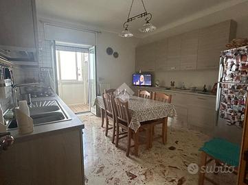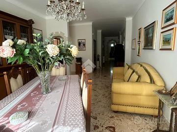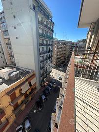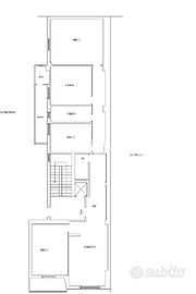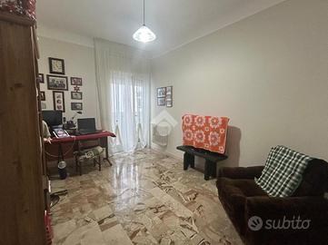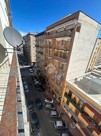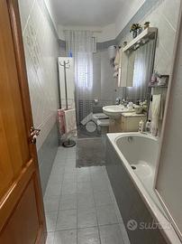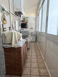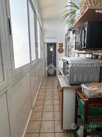 All'ingresso veniamo accolti a destra da un luminosissimo soggiorno con adiacente la prima camera con balcone con visuale aperta su via Puglia. A sinistra un corridoio ci conduce agli altri ambienti. Troviamo quindi un comodo ripostiglio, il bagno con vasca, una camera con porta finestra sulla veranda interna, l'ampia cucina-sala da pranzo con accesso al balcone verandato, nel quale troviamo il secondo servizio con bucataio, e infine una camera da letto matrimoniale.