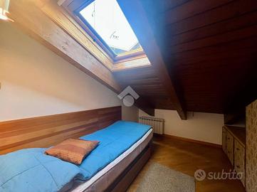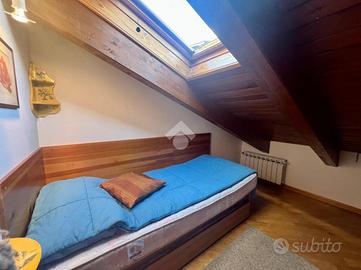 TEMU' - VIA G.MARCONI: Proponiamo in vendita appartamento quadrilocale con doppi servizi su due livelli posto al terzo e ultimo piano. L'immobile risulta composto da zona giorno con cucina a 'vista' e accesso al balcone con vista panoramica, tramite il disimpegno raggiungiamo il bagno finestrato con doccia e la cameretta con letto a castello e balcone. Attraverso la scala interna raggiungiamo il piano superiore con camera matrimoniale, cameretta e bagno finestrato con doccia. Completano la soluzione i due box auto. PUNTI DI FORZA: vista panoramica, sfoghi esterni,luminosità.