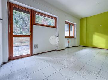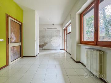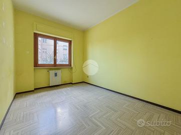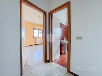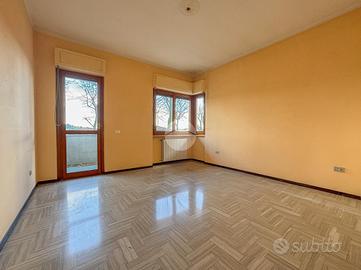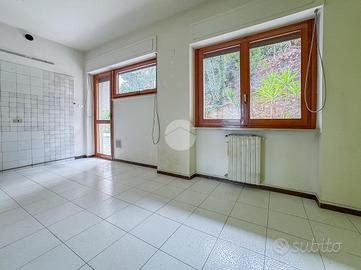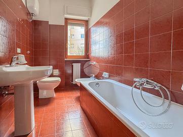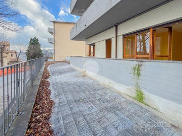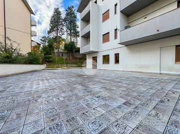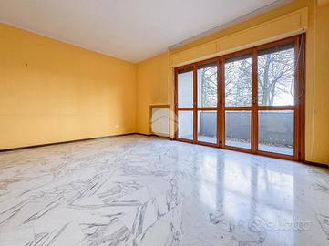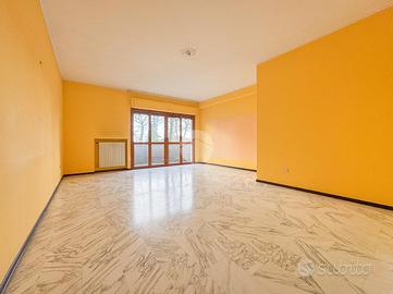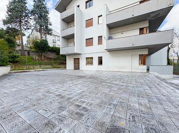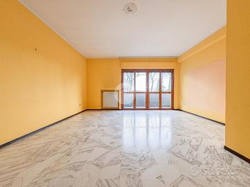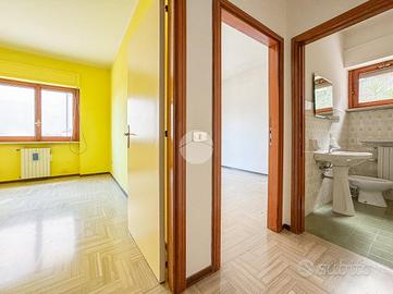 L'appartamento presenta una distribuzione degli spazi interni tipica degli anni di realizzazione, con metrature ampie e comfortevoli. Entrando troviamo subito un accogliente ingresso, che da un lato ci conduce all'ampio soggiorno di 40mq, dall'altro alla cucina abitabile; entrambi hanno l'uscita diretta sul terrazzo esclusivo di 300mq, con vista sul Castello. Un disimpegno separa poi la zona notte, dove troviamo tre comode camere da letto matrimoniali, e due bagni finestrati.
