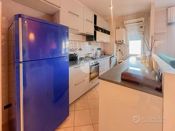 L'immobile si apre su un accogliente ingresso che introduce la luminosa zona living dotata di accesso al balcone e cucina open space. Un disimpegno conduce alla zona notte, composta da tre camere da letto con pavimentazione in parquet, due delle quali con balcone, e da un bagno finestrato.