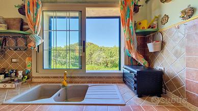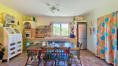 Questa proprietà gode di una metratura comoda e può essere la soluzione ideale per chi desidera una casa da vivere tutto l'anno, lontano dal caos cittadino e senza l'inconveniente di dover affrontare costi aggiuntivi di condominio. I servizi principali sono raggiungibili a 200 metri come le poste, bar, supermarket, mentre il mare dista circa 6 km.