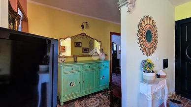 Dal portoncino all'ingresso raggiungiamo l'ampio soggiorno dove è possibile vedere la cucina attrezzata e realizzata in muratura su misura.