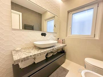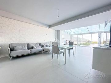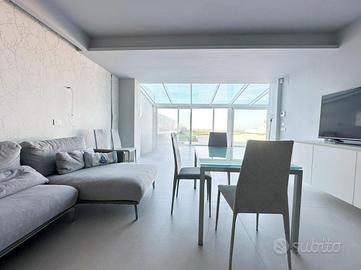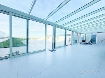 Gli interni, curati da un designer di prestigio, sono caratterizzati da un open space di 55 mq che unisce la cucina e il soggiorno; La zona living è arricchita da una veranda panoramica, dove potrai goderti momenti di relax in famiglia. La zona notte si compone da tre camere da letto, di cui la matrimoniale con bagno privato e cabina armadio, elegante bagno con box doccia ed infine una comoda lavanderia.