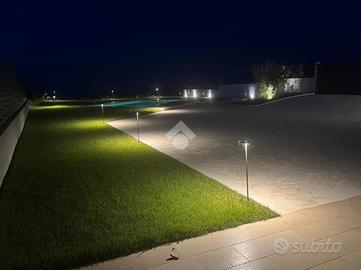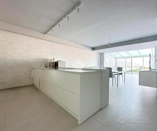 La proprietà è circondata da un'area esterna di circa 700 mq, parzialmente pavimentata con pietra di Apricena, e include una confortevole piscina con idromassaggio. Gli interni sono rifiniti con materiali di pregio e dotati di infissi ad elevata prestazione termico-acustica. Il riscaldamento a pavimento e l'aria condizionata assicurano il massimo comfort in ogni stagione.