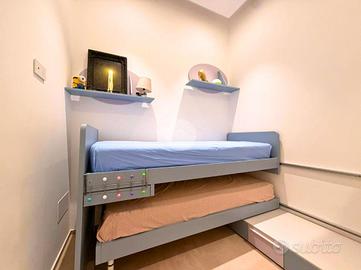 La zona notte offre il massimo del comfort grazie a due camere matrimoniali dotate di bagno privato in camera, veri angoli di benessere e riservatezza. È presente inoltre una terza camera, perfetta come cameretta, studio o stanza ospiti.