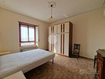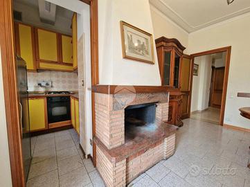 Infine, troviamo il secondo bilocale costituito da camera matrimoniale, bagno con doccia e finestra, e tinello con camino ed angolo cottura.